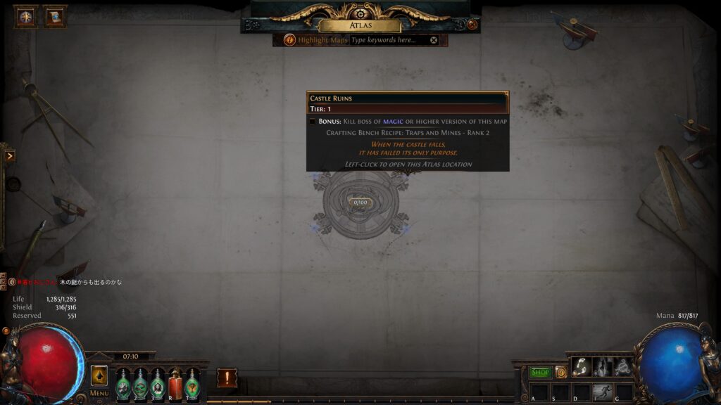 さて、actをクリアしたということで少しマップも触ってみました。