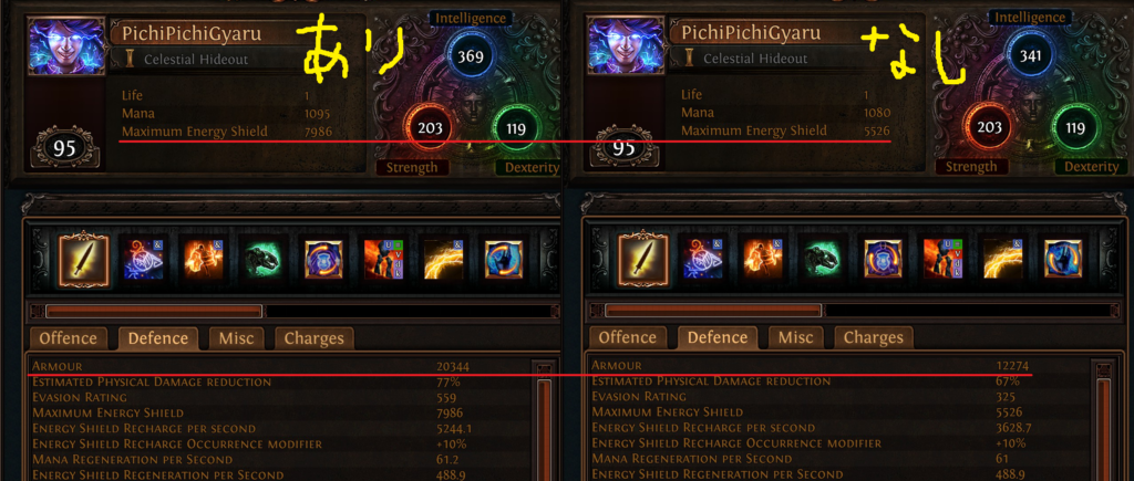 効果はarmour、evasion、ESがそれぞれincrease 100%になるものです。