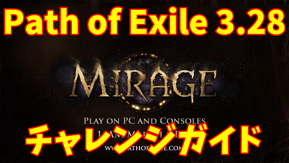 6手中3種、所定の数以下の要素を行うチャレンジです。 各要素はactやマップ中にランダムに出てきます。 一応atlas passiveやscarabで確率を上げることはできますが、 そこまでしなくてもゲームを続けていけば達成できるものばかりです。 ・Defeat Monsters with Essence / エッセンスに囚われたモンスターを倒す (30) 氷に囚われたようなモンスターが出てきます。 3回クリックすると氷が割れ、敵が襲ってきます。 それを倒します。 ・Open Strongboxes / ストロングボックスを開ける (30) 大きな箱が落ちていることがあるので、それを開けます。 開けたあとに出てくる敵を倒す必要はありません。 ・Activate Shrines / シュラインをアクティベートする (30) 敵が群がっている祭壇があります。 その祭壇をクリックすると祭壇の力を得ることができます。 祭壇の周りに群がっている敵を倒す必要はありません。 ・Defeat Possessed Monster / 憑りつかれたモンスターを倒す (30) 緑色の幽霊がレアまたはユニークの敵に憑依するので、それらを倒します。 憑依した分だけパワーアップするので注意。 数が多くなると倒せないということになりかねないので、そのときは素直に逃げましょう。 ・Defeat Rogue Exiles / ローグエグザイルを倒す (30) こちらと同じような姿形をした敵が襲ってくるので倒します。 いつの間にか倒していることが多いです。 ・Defeat Rare Beyond Monsters / レアビヨンドモンスターを倒す (30) たまに出てくるレアのビヨンドモンスターを倒します。 いつの間にか倒していることが多いです。 |